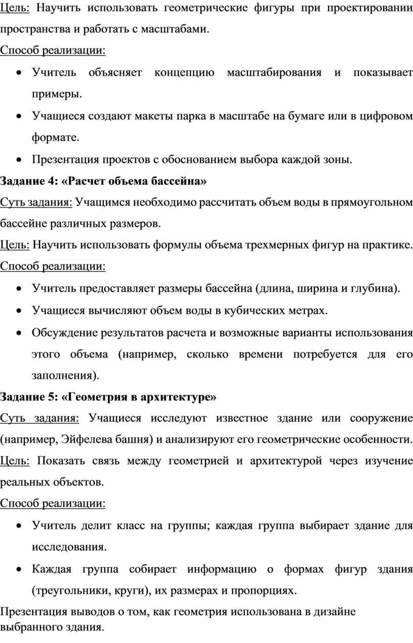 Суть задания: Учащиеся исследуют известное здание или сооружение (например, Эйфелева башня) и анализируют его геометрические особенности. Цель: Показать связь между геометрией и архитектурой через изучение реальных объектов.