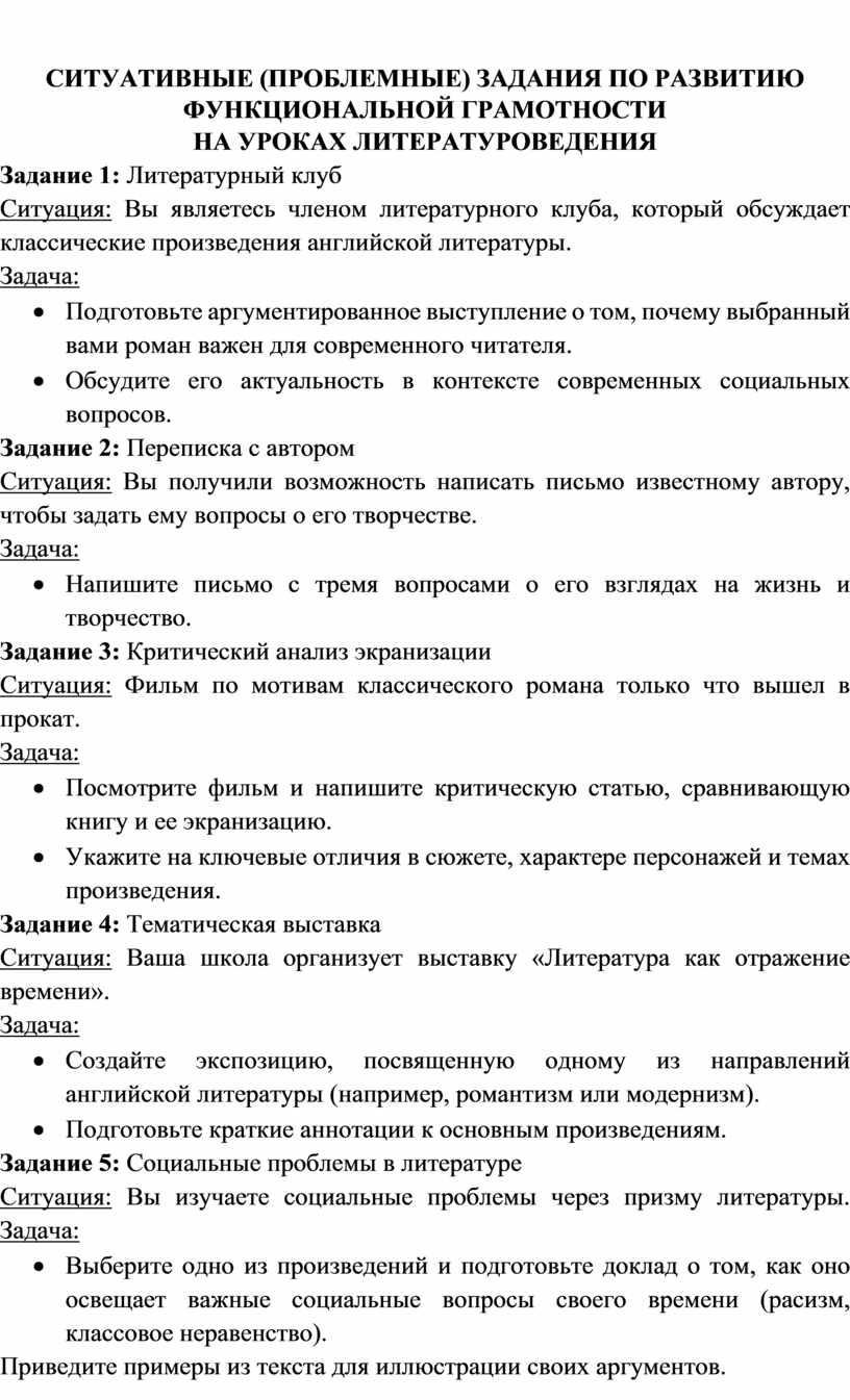 СИТУАТИВНЫЕ (ПРОБЛЕМНЫЕ) ЗАДАНИЯ ПО РАЗВИТИЮ ФУНКЦИОНАЛЬНОЙ ГРАМОТНОСТИ