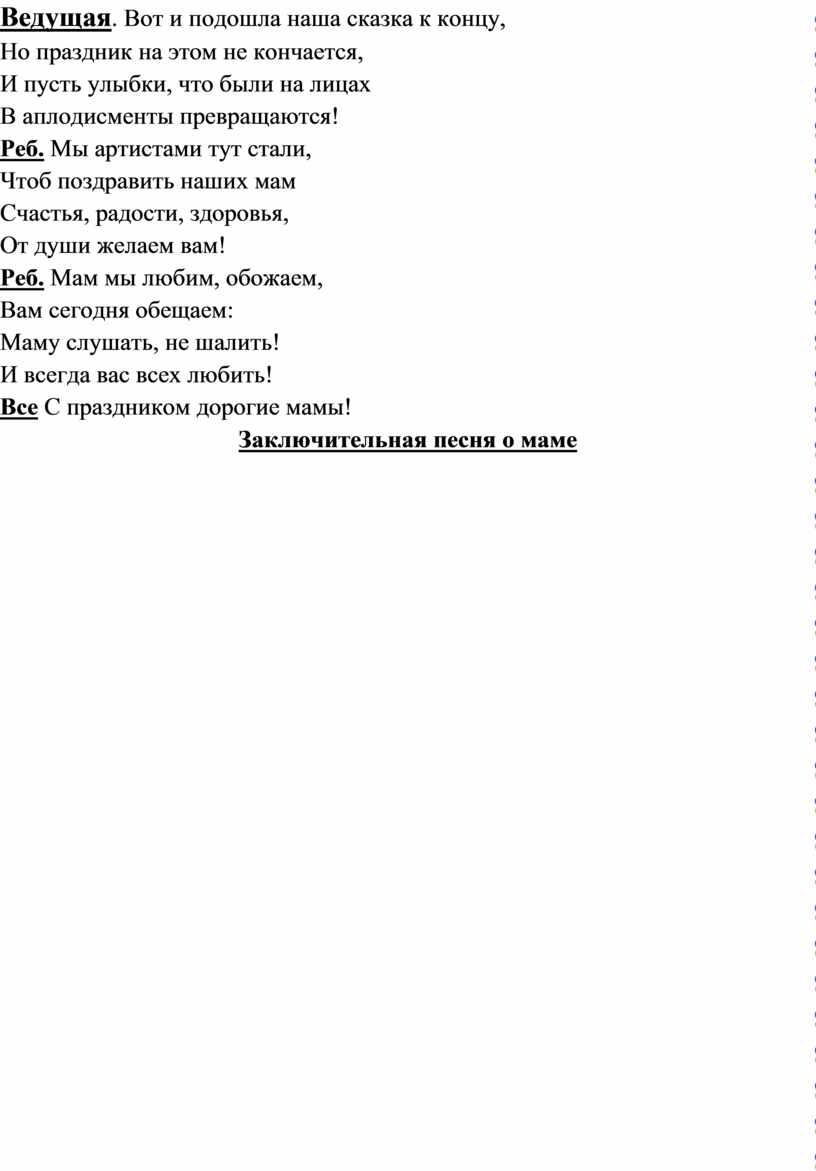 Заключительная песня о маме