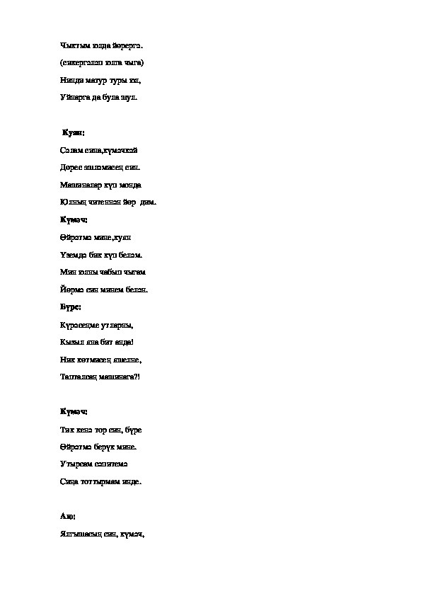 (Төлке белән Йомры күмәч юлда туп белән уйныйлар да йомры күмәч егыла... (машинаның
