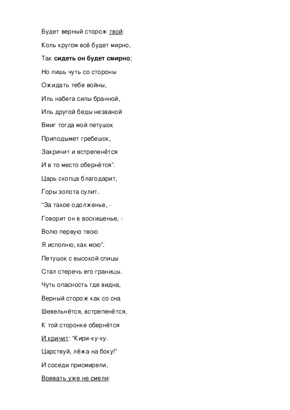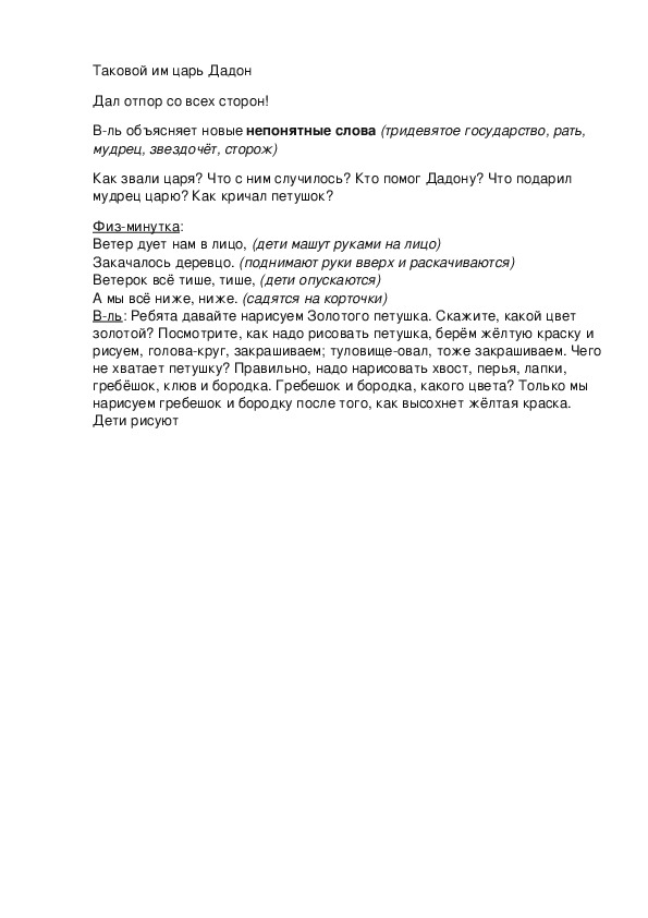 1. Познакомить детей со сказкой А. С. Пушкина «Золотой петушок»