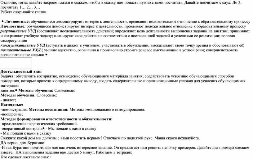 Личностные: обучающиеся демонстрируют интерес к деятельности, проявляют положительное отношение к образовательному процессу регулятивные УУД (составляют последовательность действий; определяют цель деятельности выполнения заданий на занятии; принимают и сохраняют учебную задачу; планируют свое действие в соответствии с поставленной задачей и условиями ее реализации; волевая саморегуляция коммуникативные УУД (вступать в диалог с учителем, участвовать в обсуждении, высказывают свою точку зрения и обосновывают её) познавательные УУД ( умение адекватно, осознанно и произвольно строить речевое высказывание в устной речи; совершенствовать вычислительные навыки, |