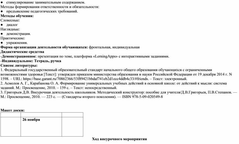 Методы формирования ответственности и обязательности: