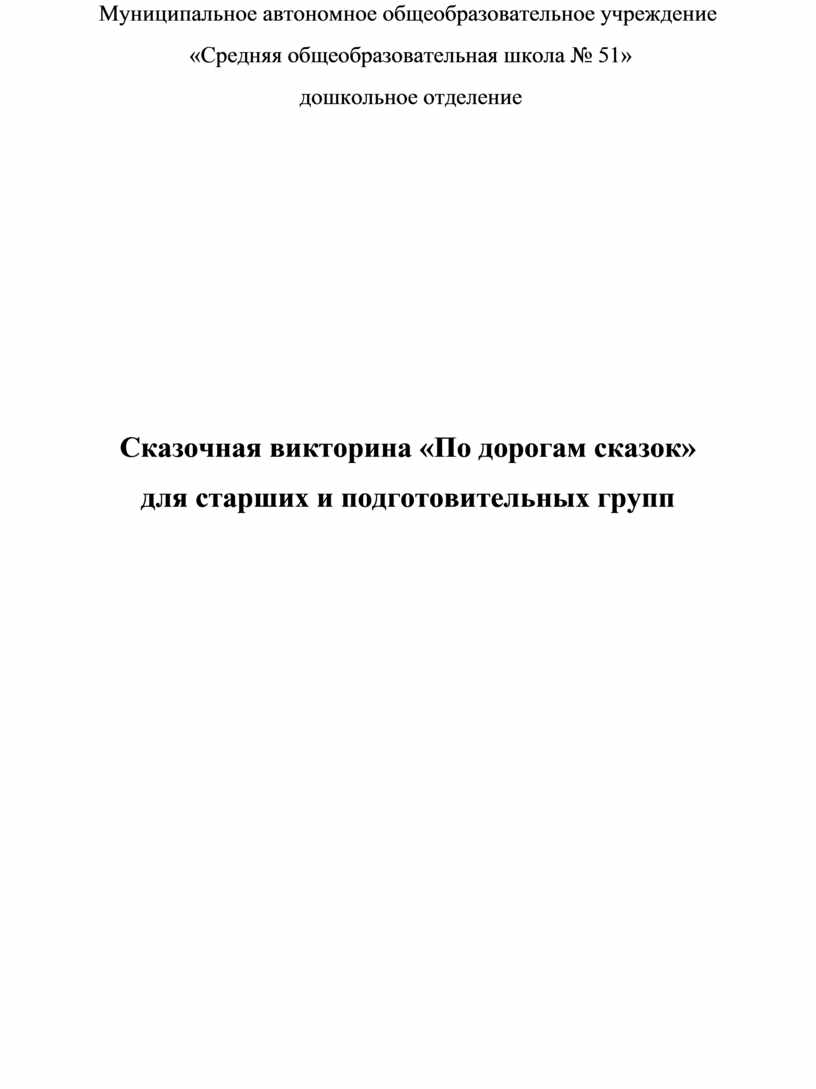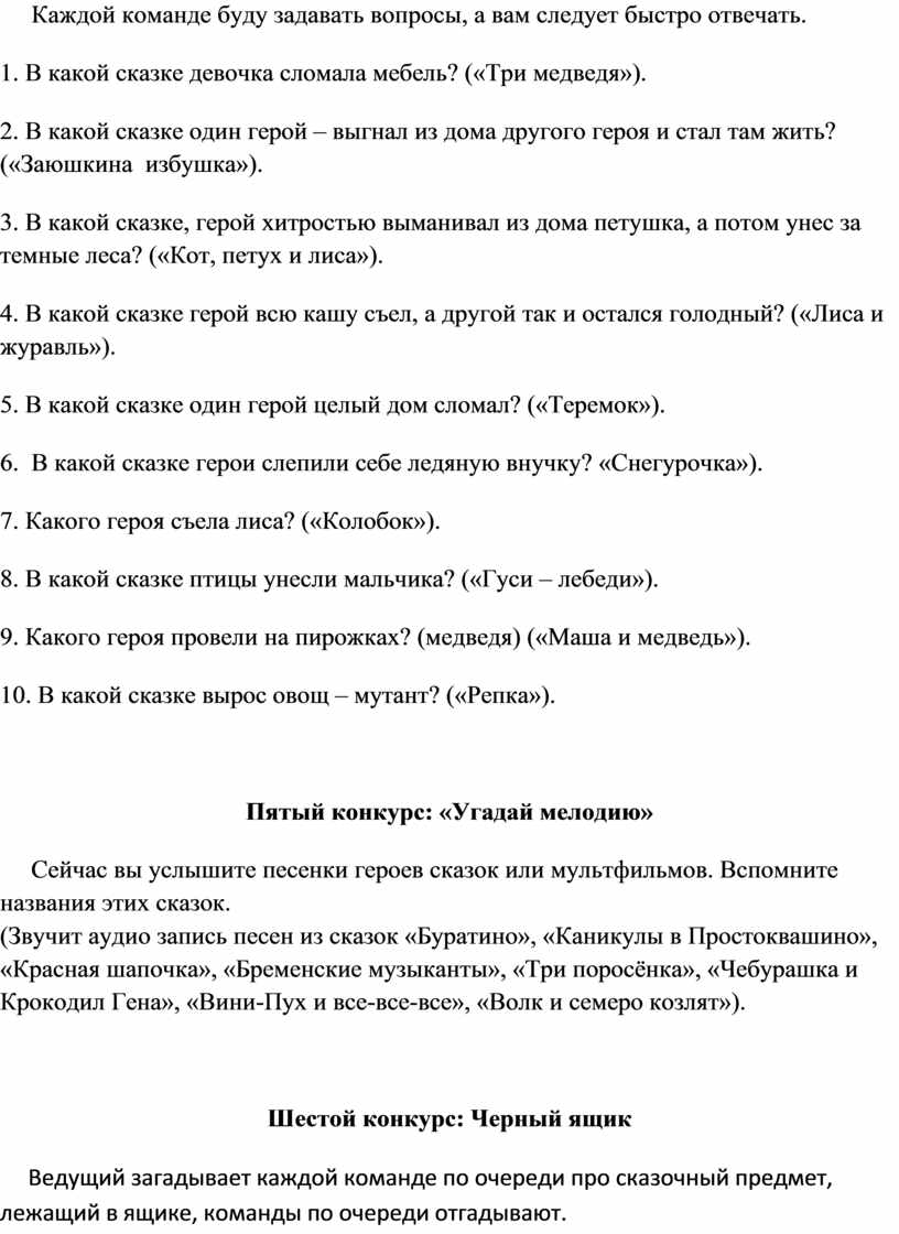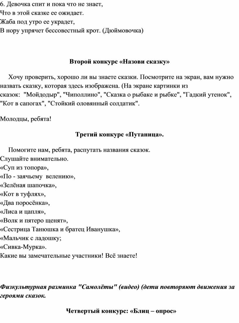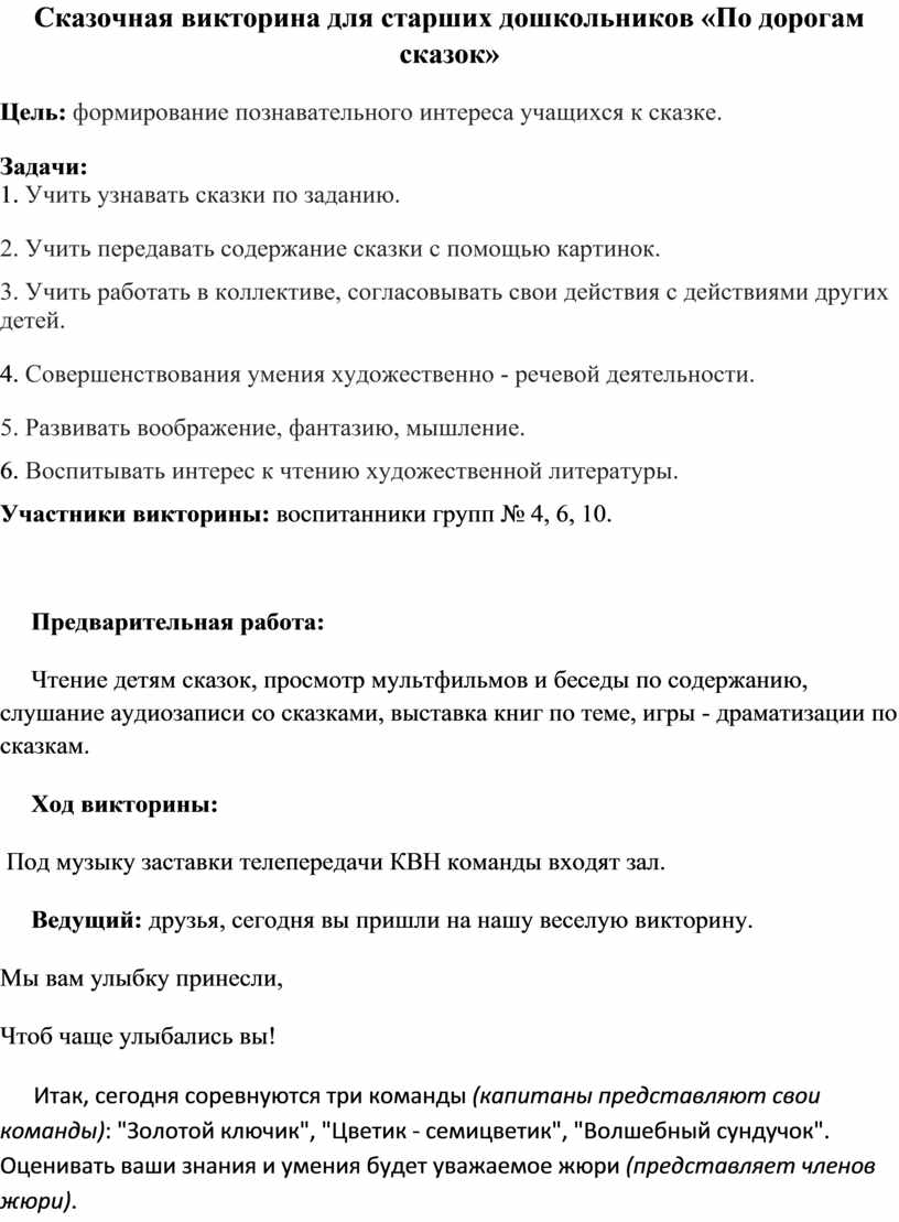 Сказочная викторина для старших дошкольников «По дорогам сказок»