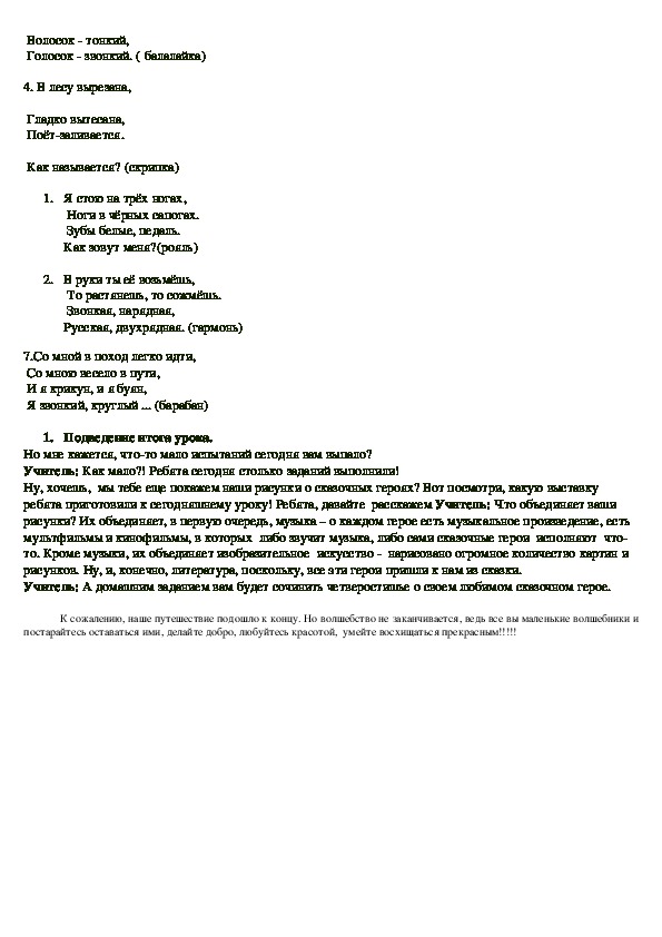 Вывод: Музыка без слов тоже может рассказывать сказки, но не словами, а звукамидобрыми и