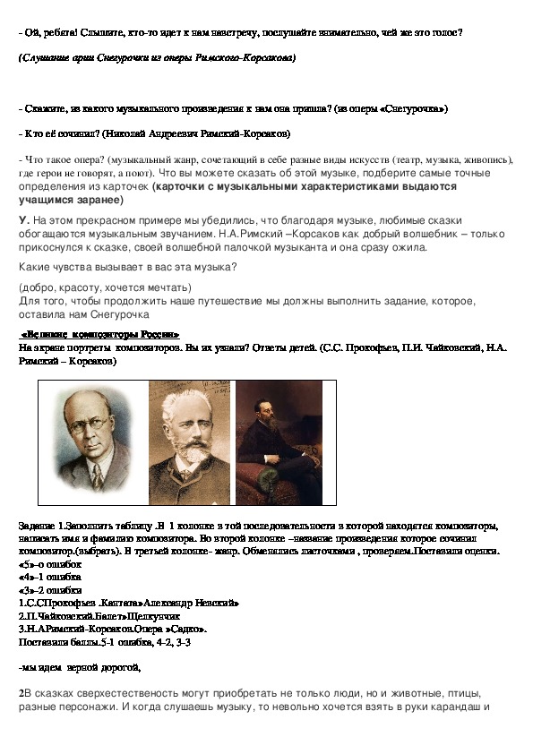 (Слушание арии Снегурочки из оперы РимскогоКорсакова)