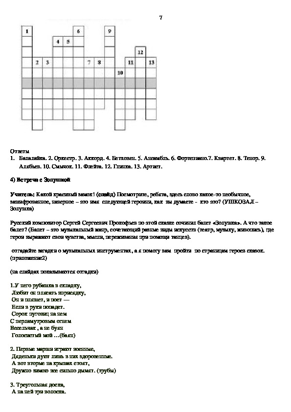 Алябьев. 10. Смычок. 11. Флейта. 12. Глинка. 13. Артист.