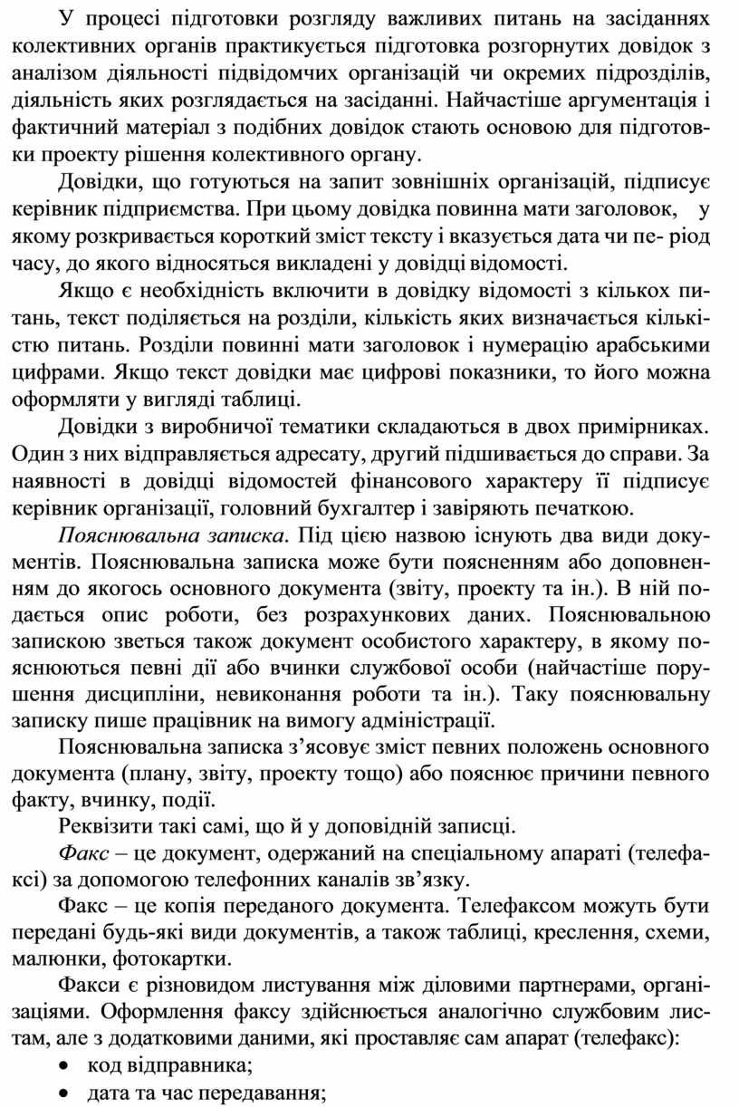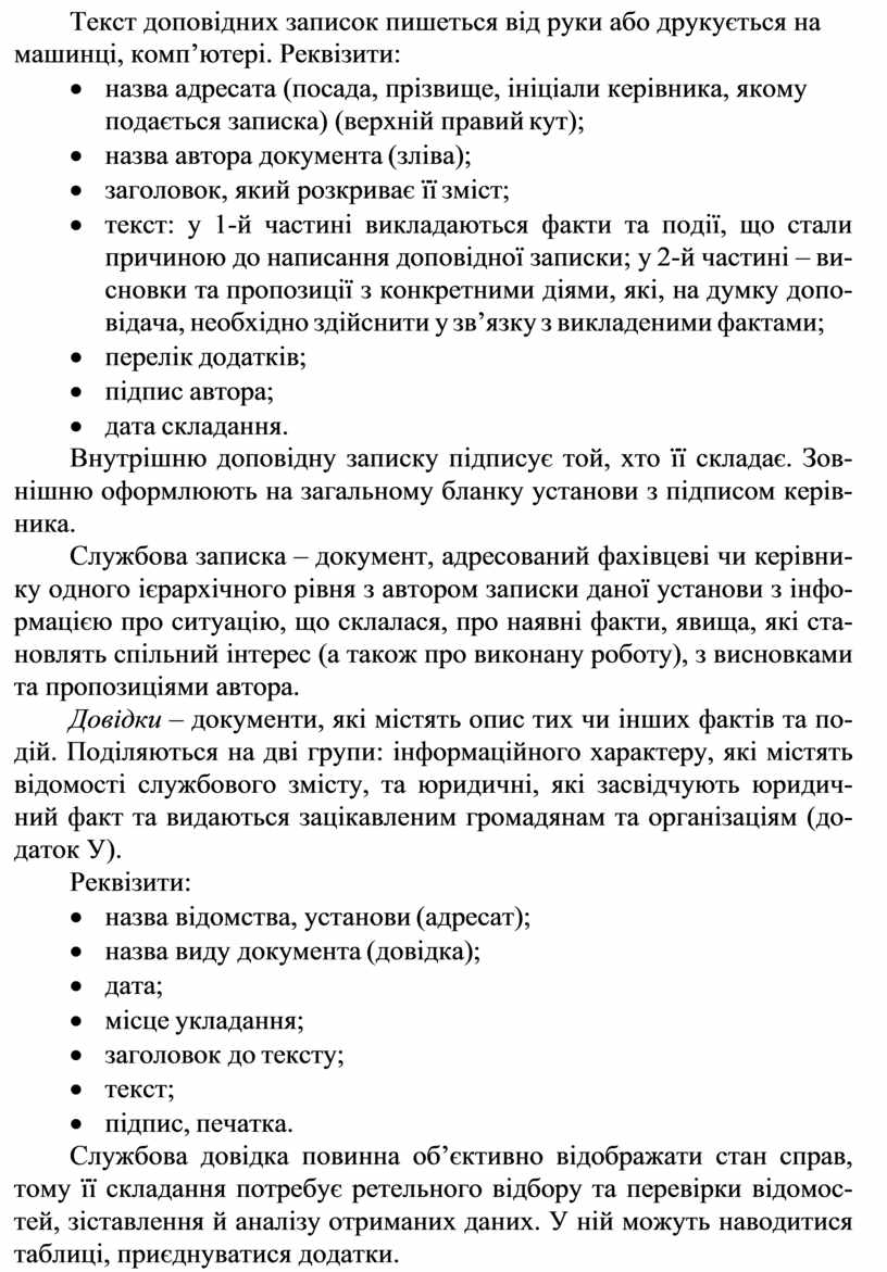 · текст: у 1-й частині викладаються факти та події, що стали причиною до написання доповідної записки; у 2-й частині – ви- сновки та пропозиції з конкретними діями, які, на думку допо- відача, необхідно здійснити у зв’язку з викладеними фактами;
