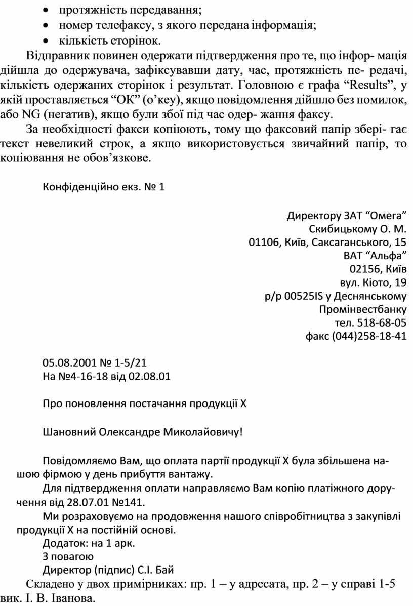 2. Дуже дякуємо за лист (факс) від 03.09.2001.