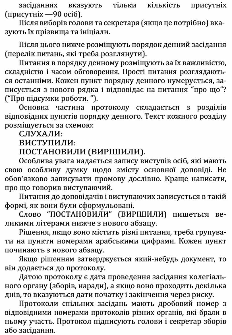 Протоколи фіксують послідовний процес роботи та прий- няття рішення. У повних та стенографічних протоколах повинен бути зміст усіх виступів з кожного питання порядку денного.