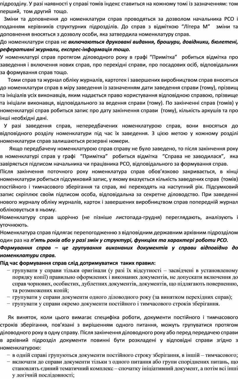 Як виняток, коли цього вимагає специфіка роботи, документи постійного і тимчасового строків зберігання, пов’язані з вирішенням одного питання, можуть групуватися протягом діловодного року в одну справу. Після закінчення діловодного року або перед передачею справи в архівний підрозділ документи повинні бути розкладені у відповідні справи згідно з номенклатурою: