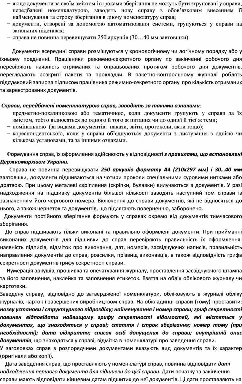 Формування справ, їх оформлення здійснюють у відповідності з правилами, що встановлені Держкомархівом України.