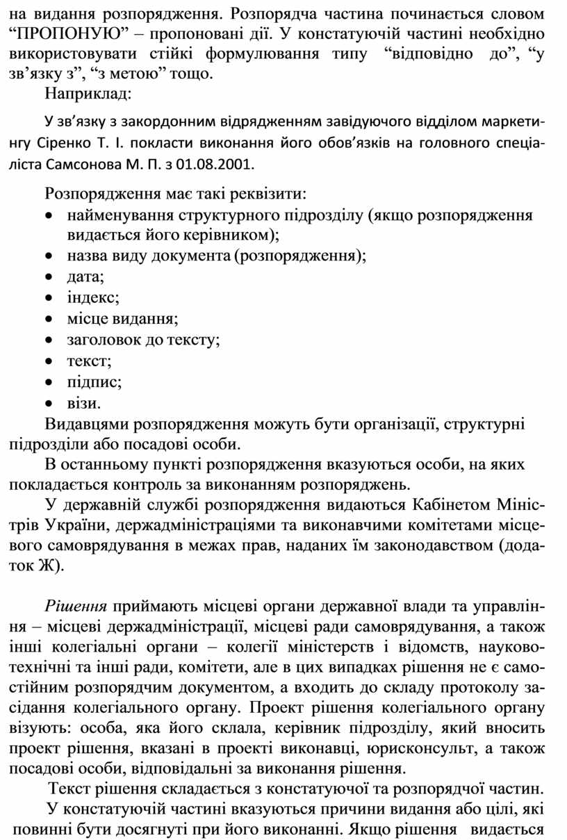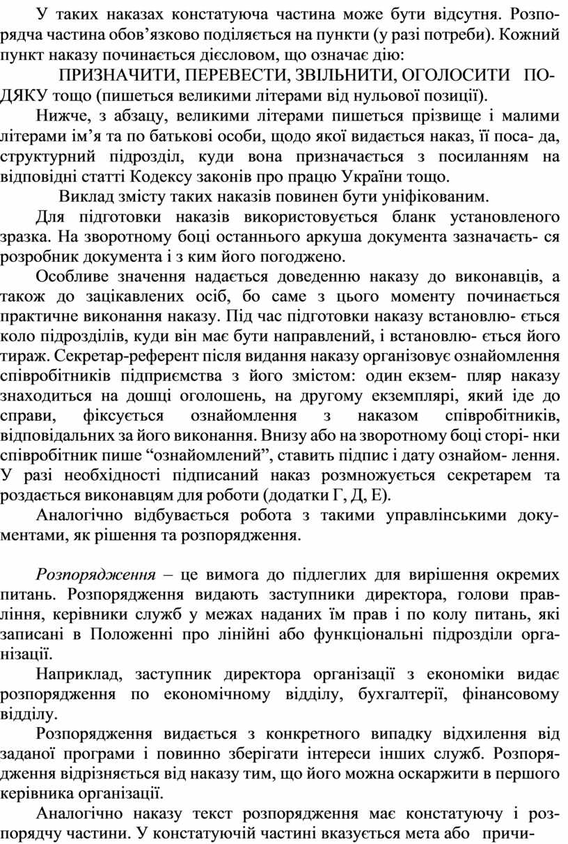 Розпорядження – це вимога до підлеглих для вирішення окремих питань. Розпорядження видають заступники директора, голови прав- ління, керівники служб у межах наданих їм прав і по колу питань, які записані в Положенні про лінійні або функціональні підрозділи орга- нізації.