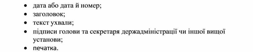 · підписи голови та секретаря держадміністрації чи іншої вищої установи;