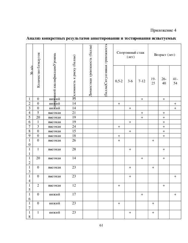 Анализ конкретных результатов анкетирования и тестирования испытуемых