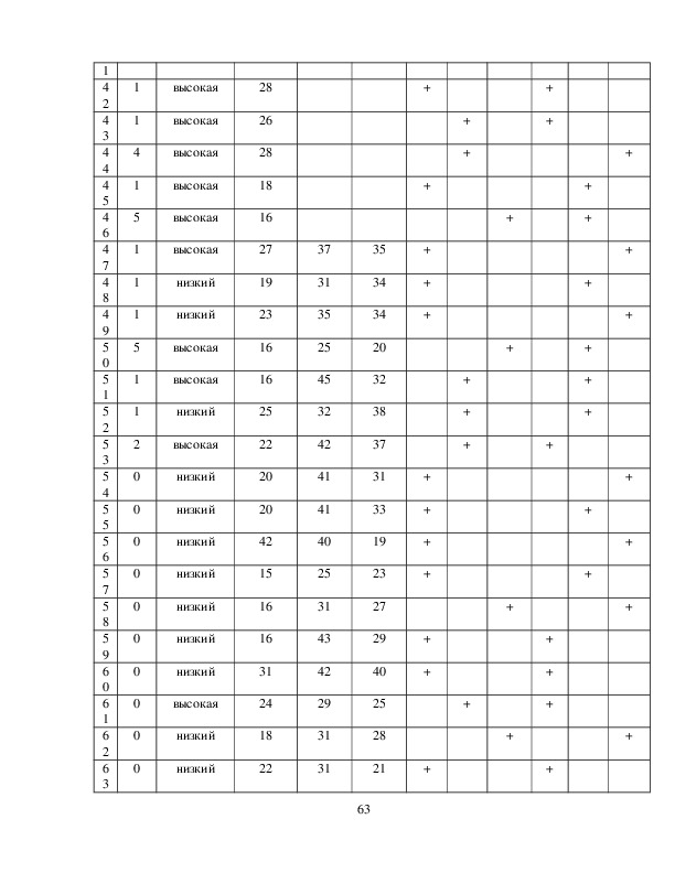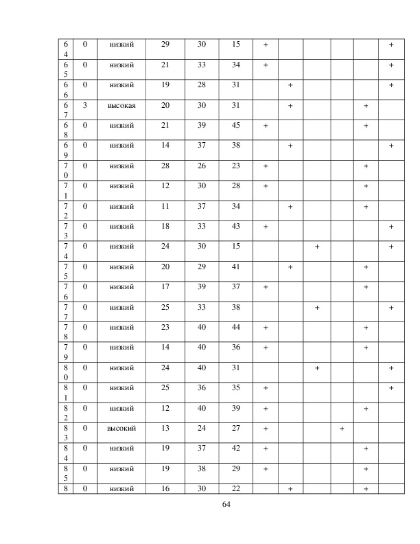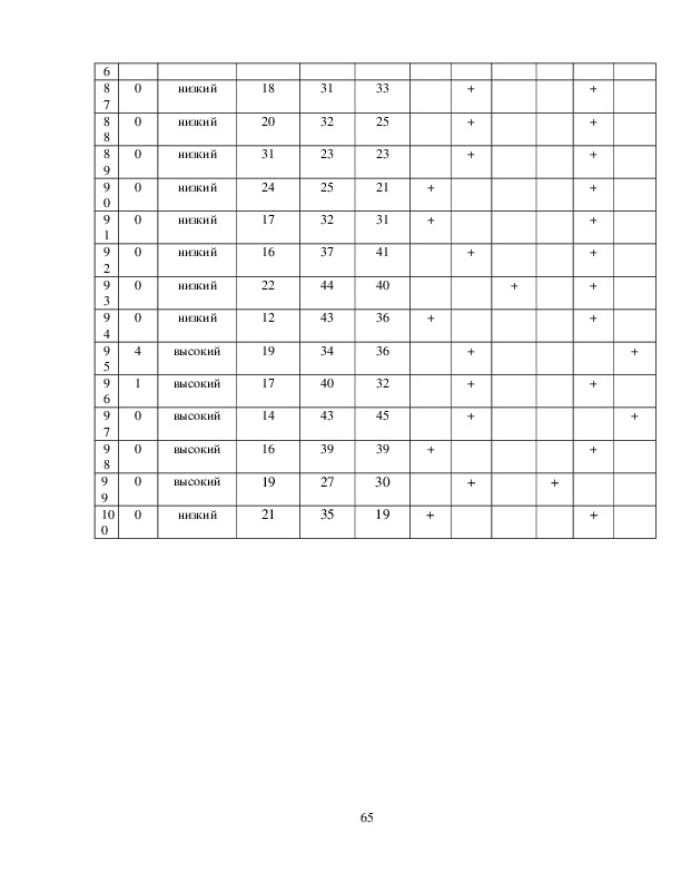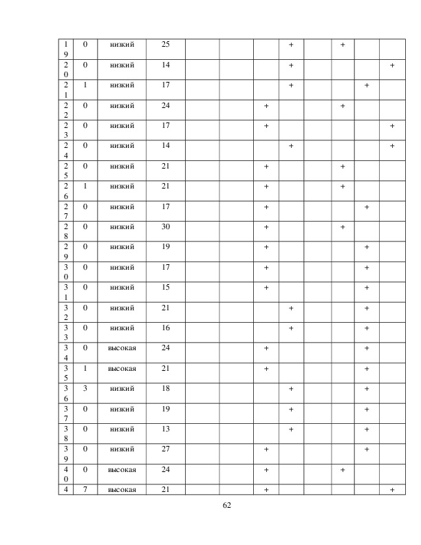 низкая, 31 – 44 балла – умеренная; 45 и более – высокая.