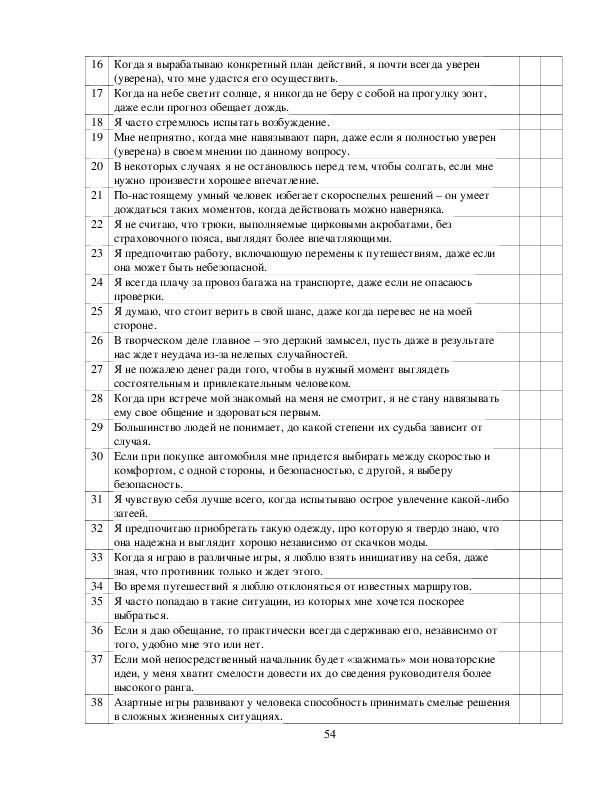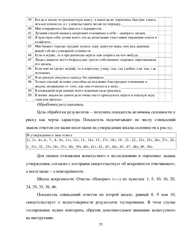 вариантов опросника, то обработка результатов не имеет вообще смысла.