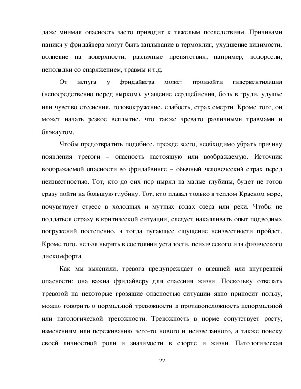 3тревожности, являются для фридайверов одними из определяющих факторов