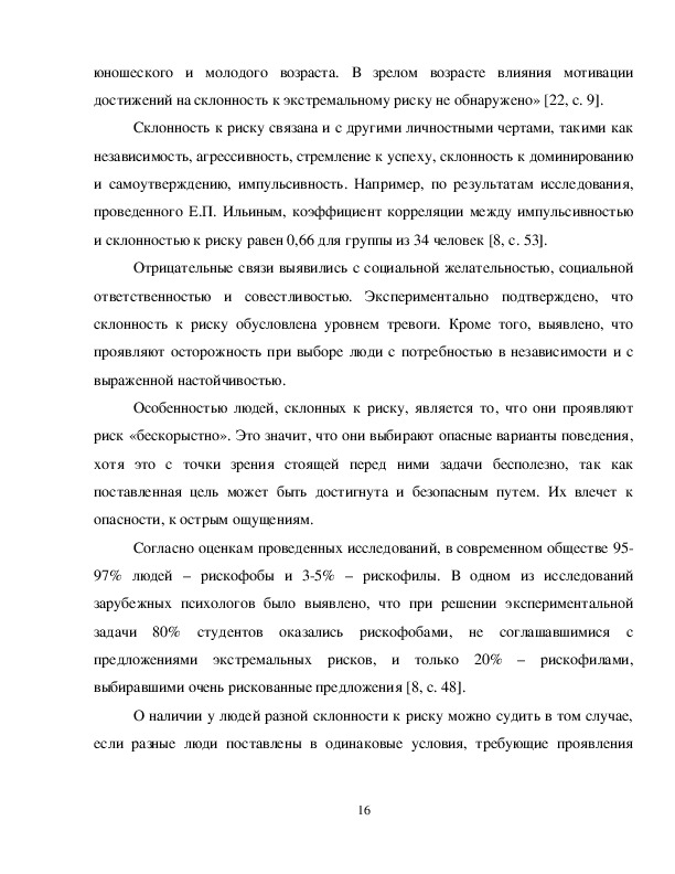 личности, как высокая степень склонности к риску и повышенный уровень