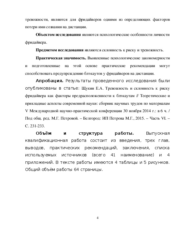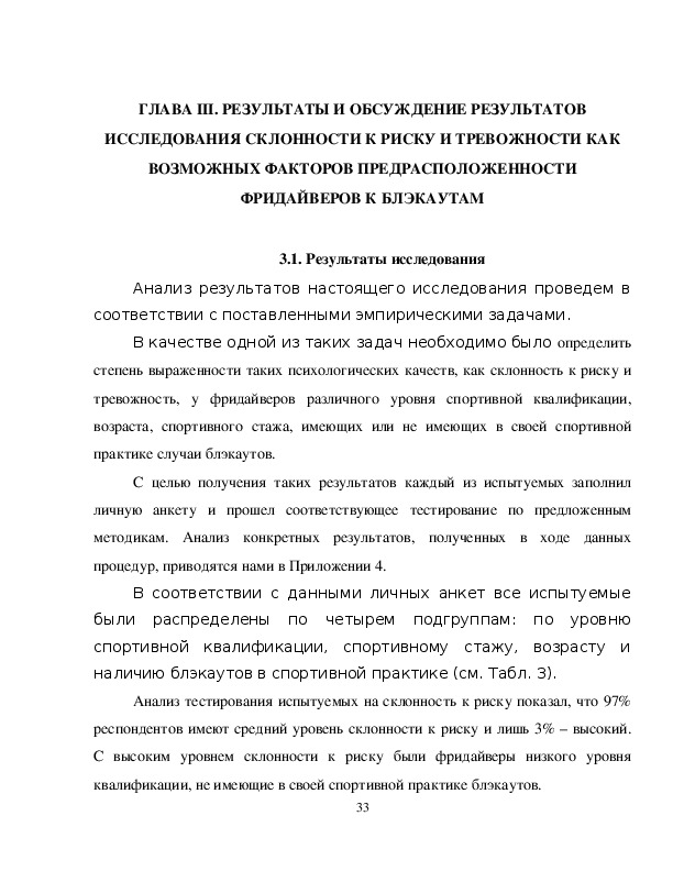 Предметом исследования являются склонность к риску и тревожность.