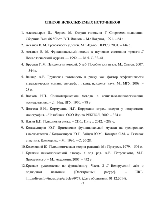 СПИСОК ИСПОЛЬЗУЕМЫХ ИСТОЧНИКОВ…………………………… 46