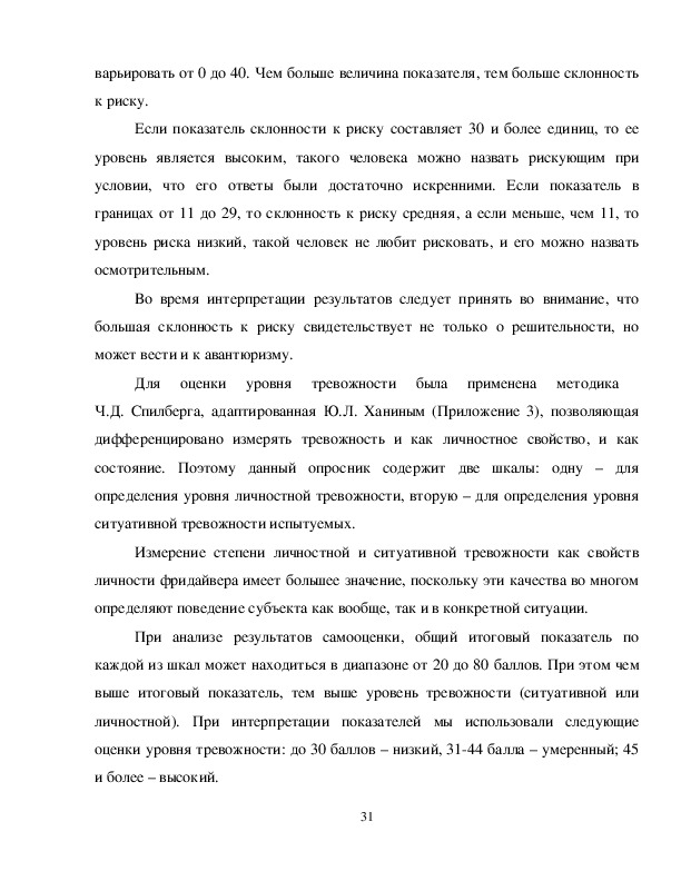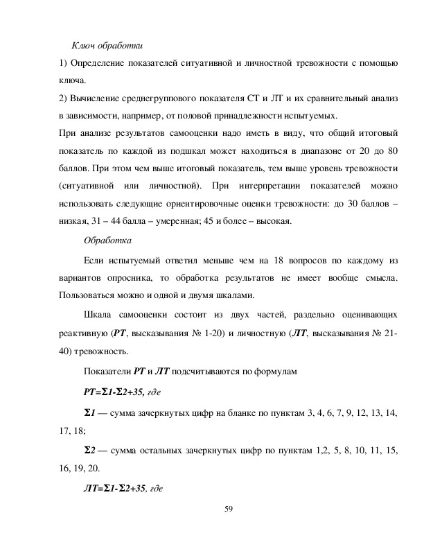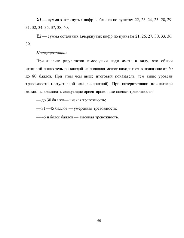 тревожности (ситуативной или личностной). При интерпретации показателей