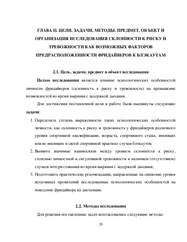 ГЛАВА II. ЦЕЛИ, ЗАДАЧИ, МЕТОДЫ И ОРГАНИЗАЦИЯ