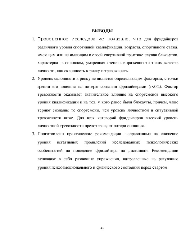 выводов, практических рекомендаций, заключения, списка