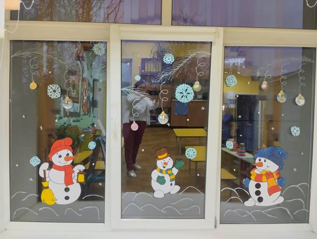 Оформление окон в детском саду «Скоро, скоро Новый год»!