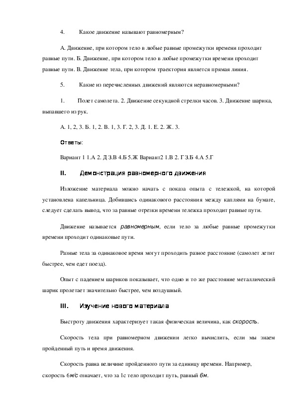 Цели урока: познакомиться с одной из важнейших характеристик ме¬ханического движения.