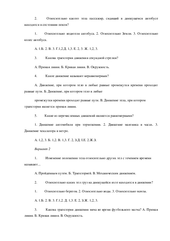 равные пути. В. Движение тела, при котором траектория является прямая линия.