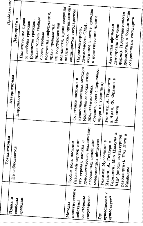 Сопоставлять различные типы политических режимов. Называть и раскрывать основные принципы демократического устройства |
