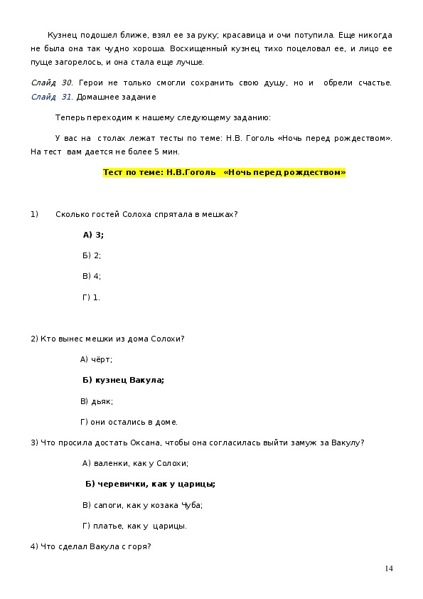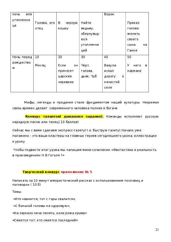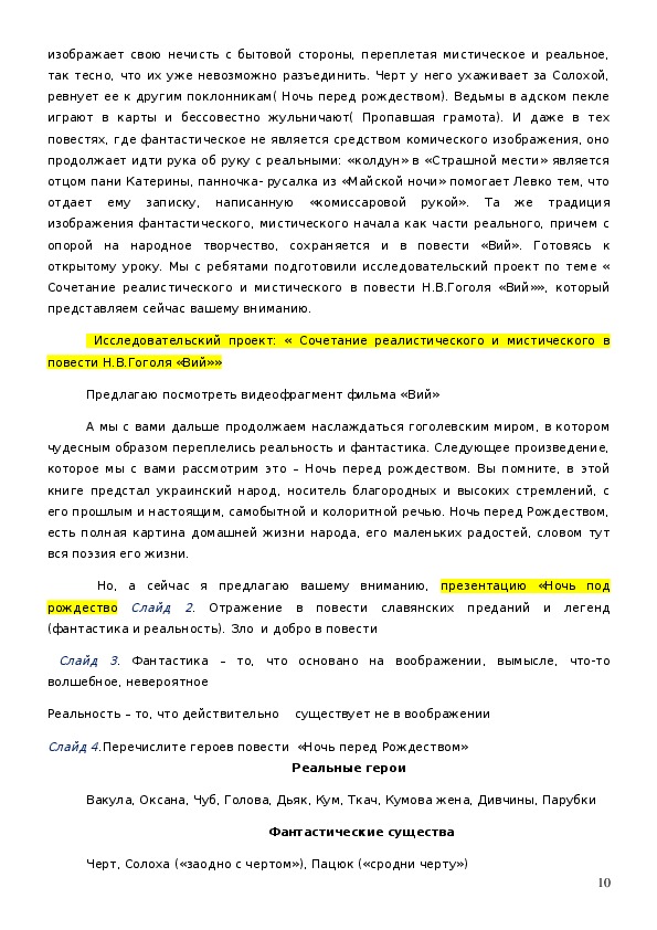 Обобщение и систематизация материала о Н.В. Гоголе и его произведений : «Вий», «Ночь под Рождество»,
