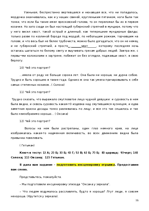 Формирование артистических навыков. Помочь студентам проникнуть в мир Гоголя на примере вышеназванных произведений,