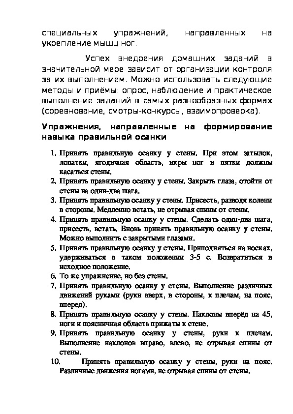 8. Принять правильную осанку у стены. Наклоны вперёд на 45,