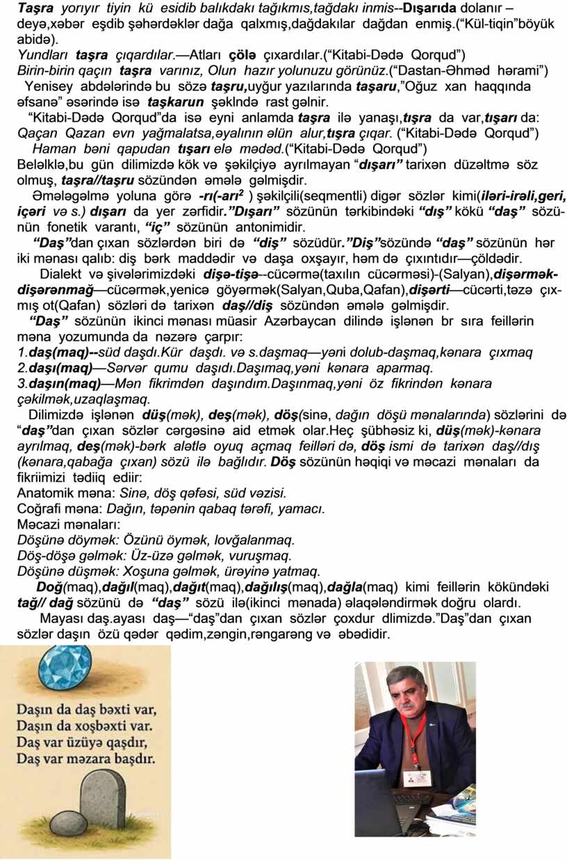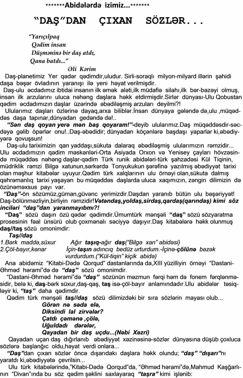 “Daş”-ön sözümüz,güman,güvənc yerimizdir.Daşdan yaranıb bütün ulu bəşəriyyət!