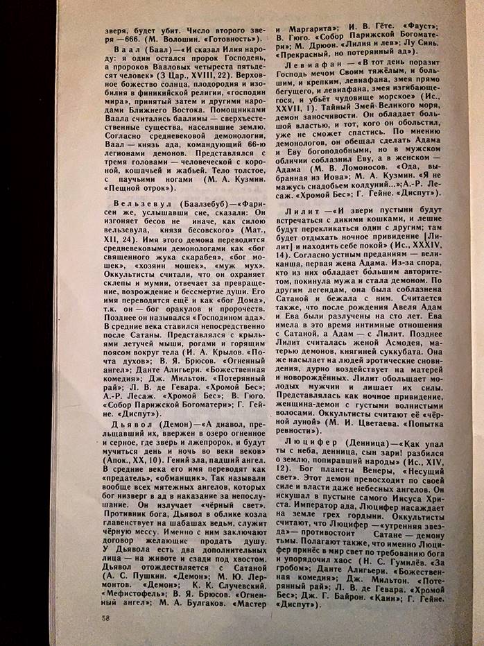 в статье в форме словаря анализируются демонические образы и персонажи, встречающиеся в русской литературе