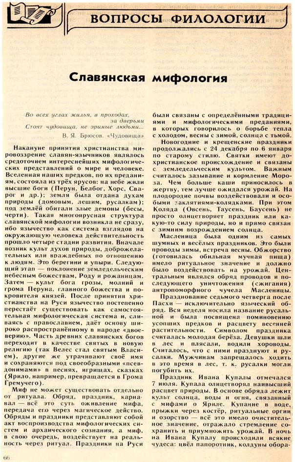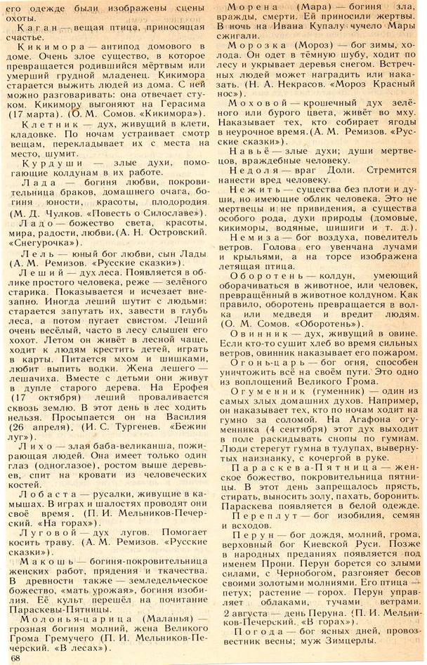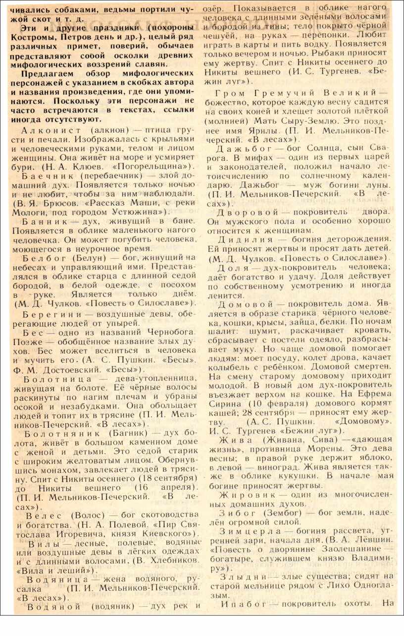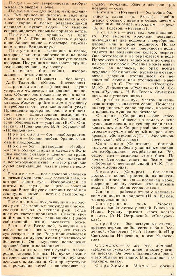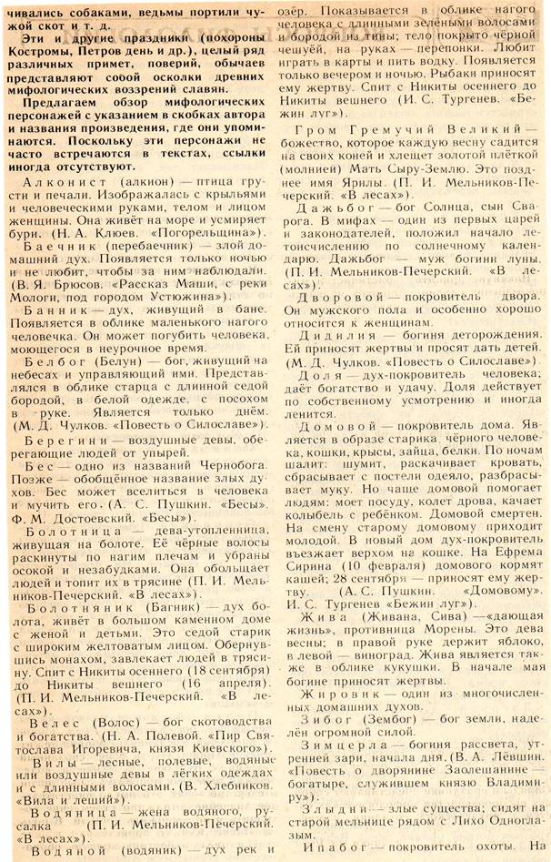 в статье в форме словаря представлены имена персонажей славянской мифологии