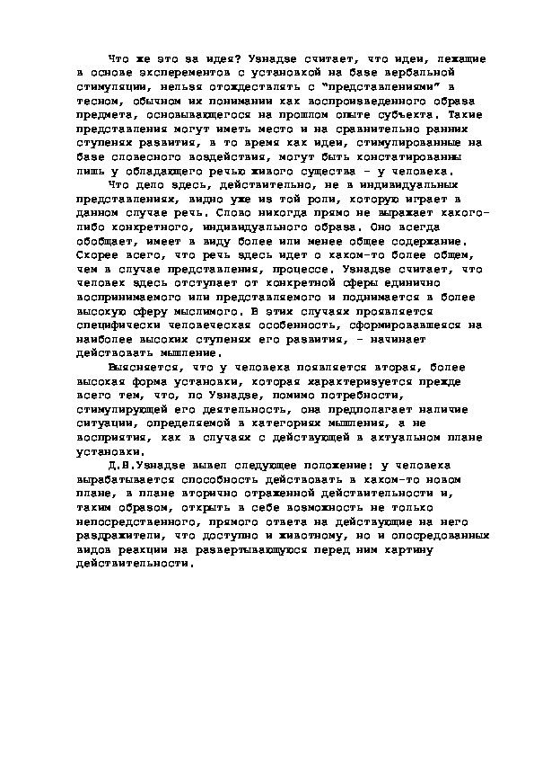 субъектов, оперирующих идеей, представлением, мыслью.Что же это за идея? Узнадзе считает, что идеи, лежащие