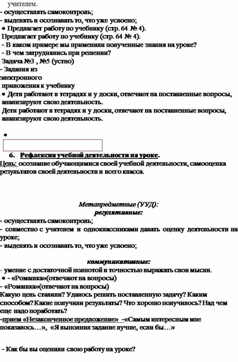Метапредметные (УУД): регулятивные: - осуществлять самоконтроль; - совместно с учителем и одноклассниками давать оценку деятельности на уроке; - выделять и осознавать то, что уже усвоено;