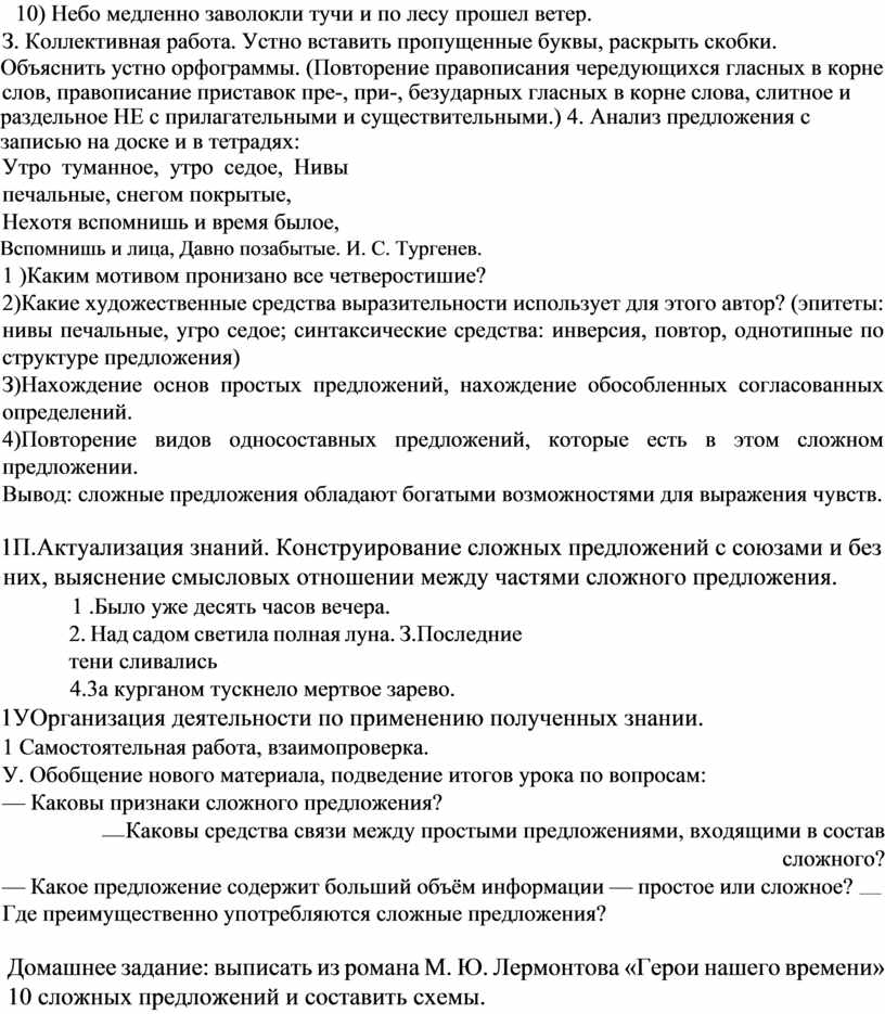 задание: выписать из романа М. Ю. Лермонтова «Герои нашего времени» 10 сложных