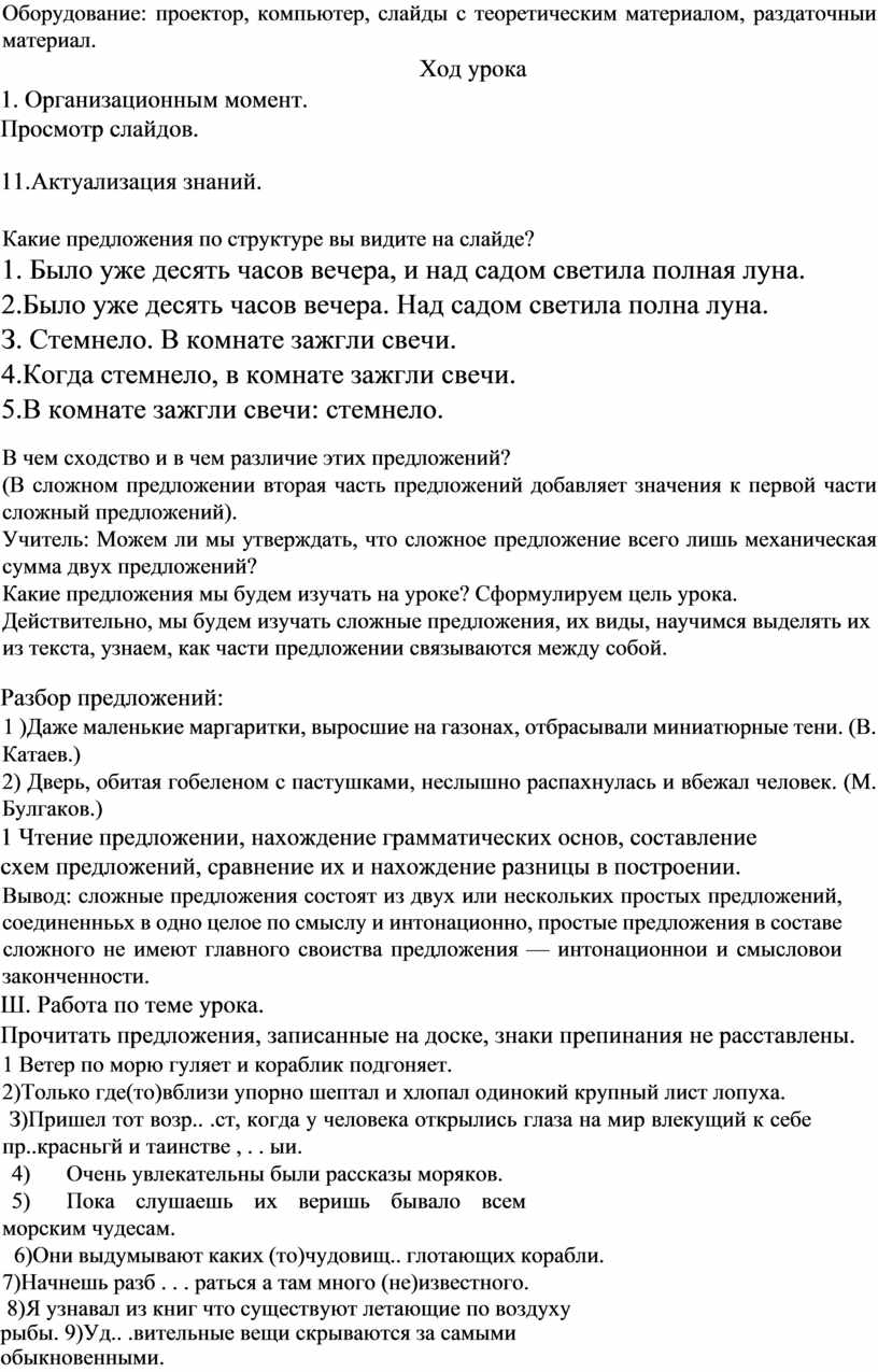 Открытый урок по теме: «Сложные предложения».