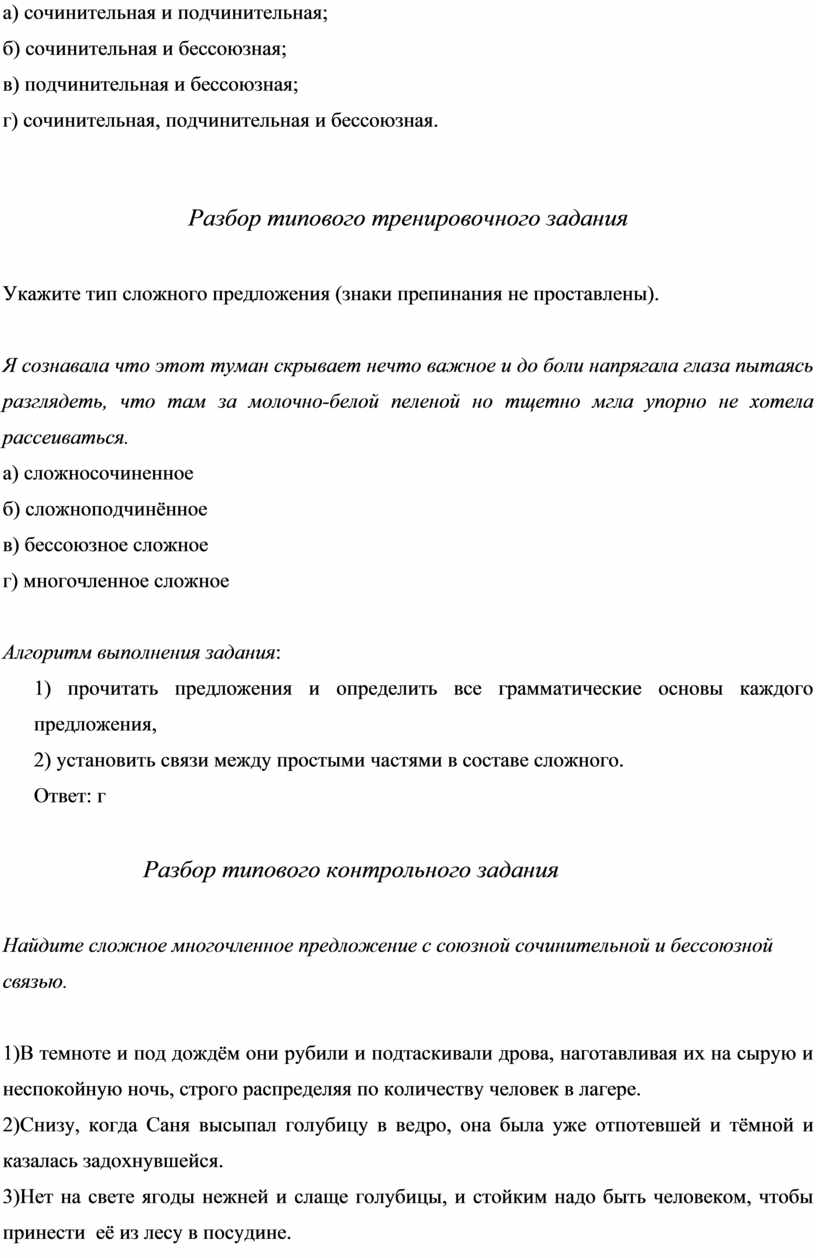 2) При всем многообразии сочетаний простых предложений в многочленных сложных предложениях комбинация в них видов связи ограничена следующими вариантами: