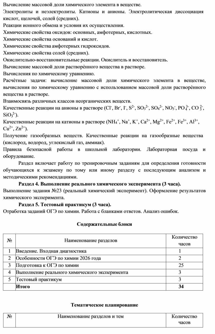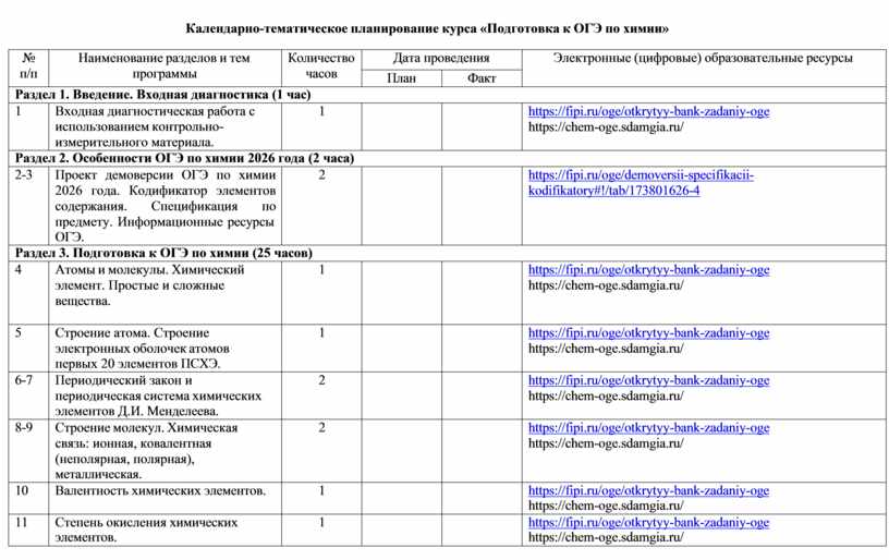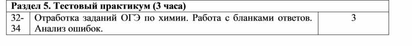 Календарно-тематическое планирование курса «Подготовка к ОГЭ по химии»