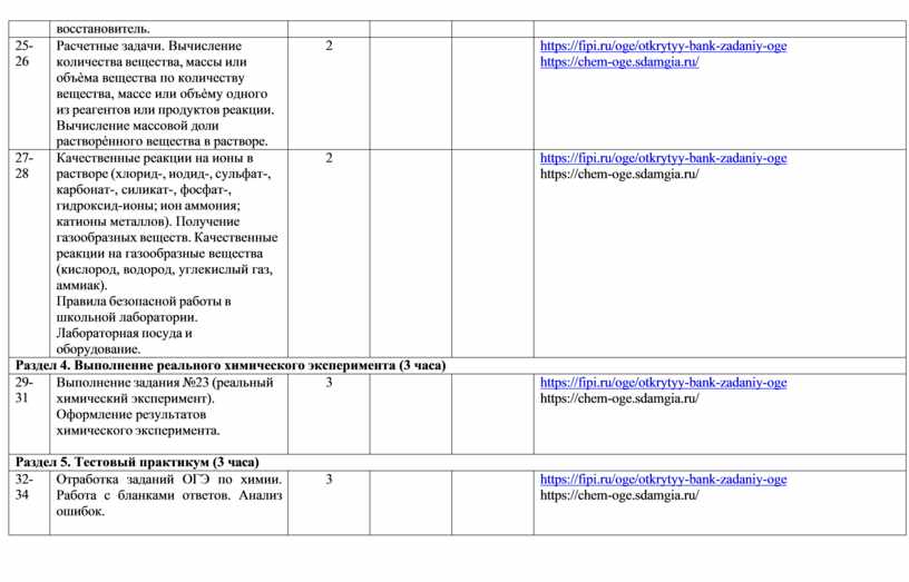 Раздел 4. Выполнение реального химического эксперимента (3 часа) |
