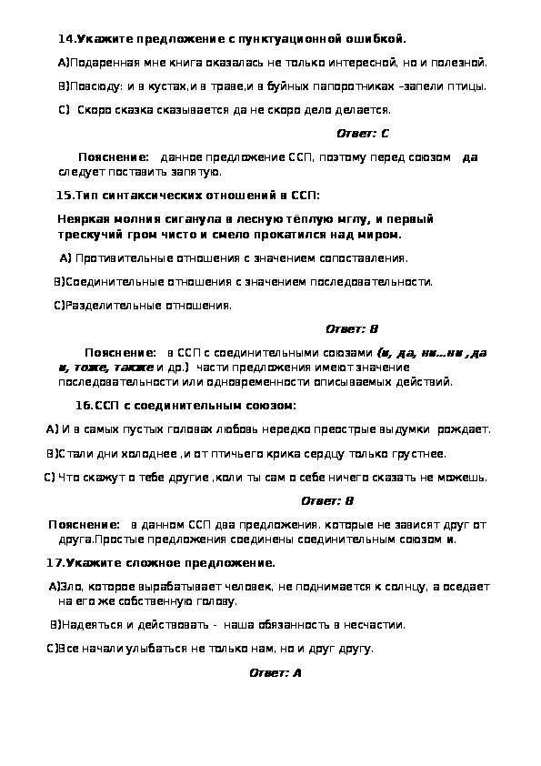 и др.14.Укажите предложение с пунктуационной ошибкой.