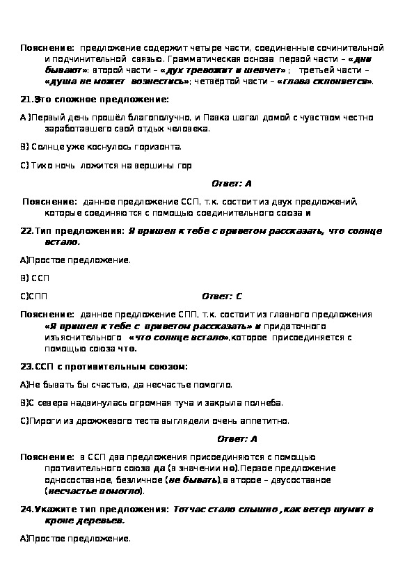 24.Укажите тип предложения: Тотчас стало слышно ,как ветер шумит в