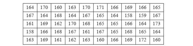 Таблица 3. Рост 50 случайно выбранных девушек, см