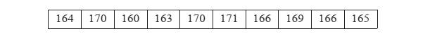 Среднее значение роста в этой выборке равно 165,3 см, медиана – 165 см. Эти значения мало отличаются от тех, что получены для первых двух выборок. А вот размах колебаний роста увеличился до 15 см. Это естественно. Чем больше человек мы случайно выбираем, тем больше шансы, что среди них попадутся более высокие и более низкие люди.