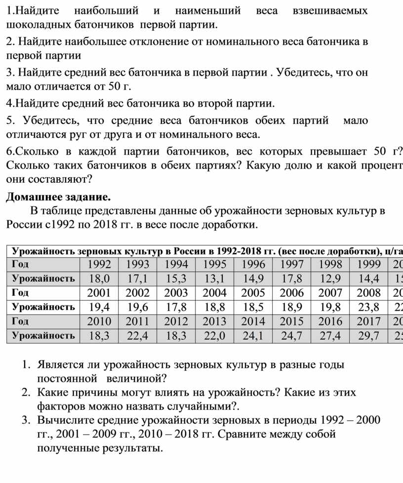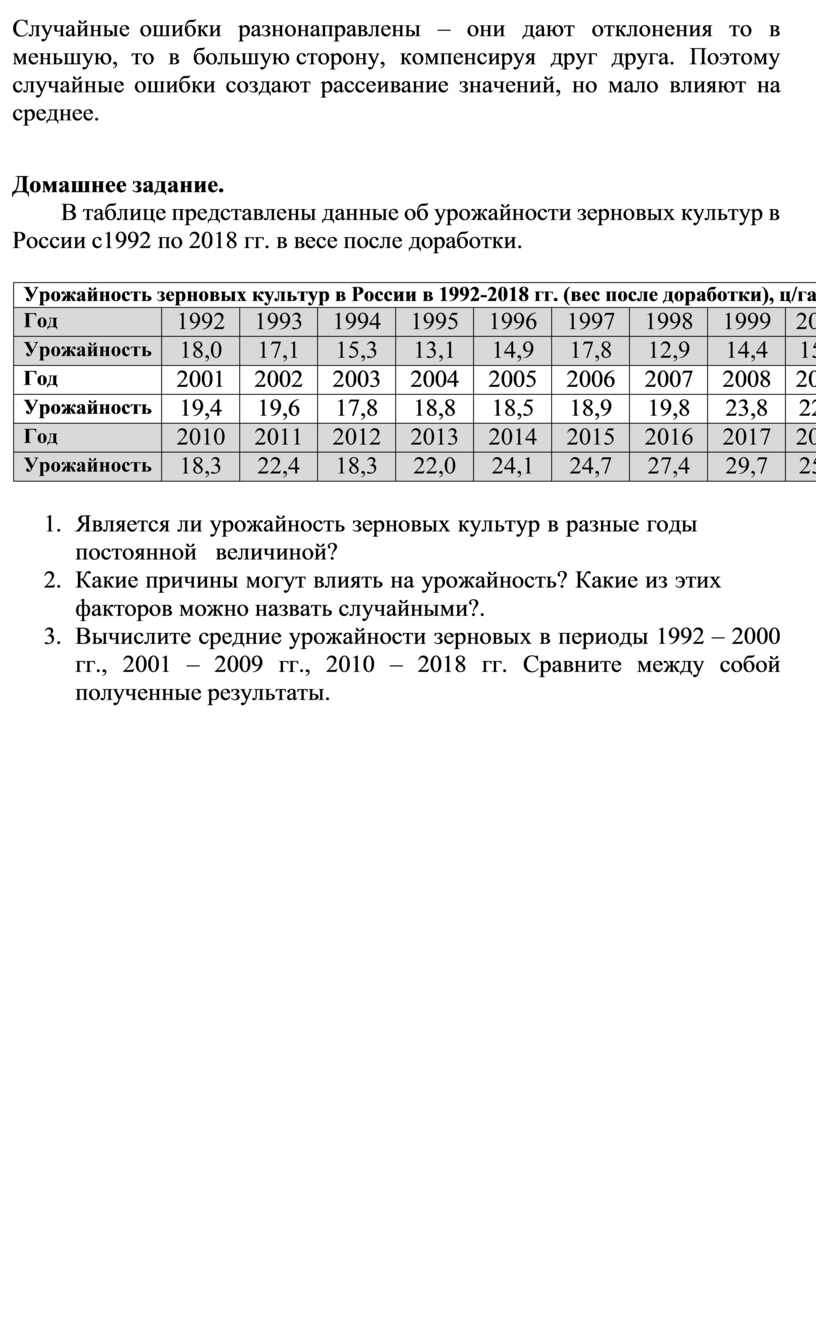1. Является ли урожайность зерновых культур в разные годы постоянной величиной?
